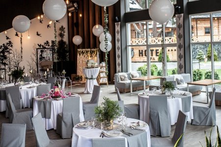 Bankiet w hotelu Bacówce to wydarzenie, które można zorganizować dokładnie tak, jak Państwo sobie wymarzą. Do dyspozycji są przestrzenie o różnym charakterze - elegancka restauracja Ferula, klimatyczna sala Parzenica, przeszklona Oranżeria lub duży namiot w plenerze.