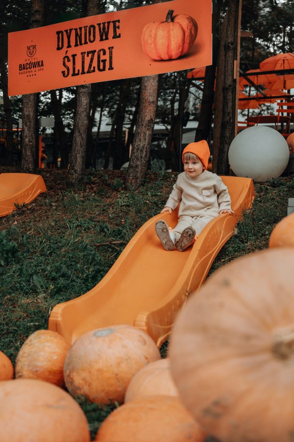 Gdy dni stają się krótsze, a świat wokół mieni się złotem i pomarańczą, w Bacówce Radawa&SPA**** pojawia się wyjątkowe miejsce – Farma Dyniowa. To bajkowa przestrzeń, w której dzieci mogą odkrywać uroki jesieni wszystkimi zmysłami. Tu zabawa nie ma końca, a każdy zakątek pachnie dyniami, słomą i radością.