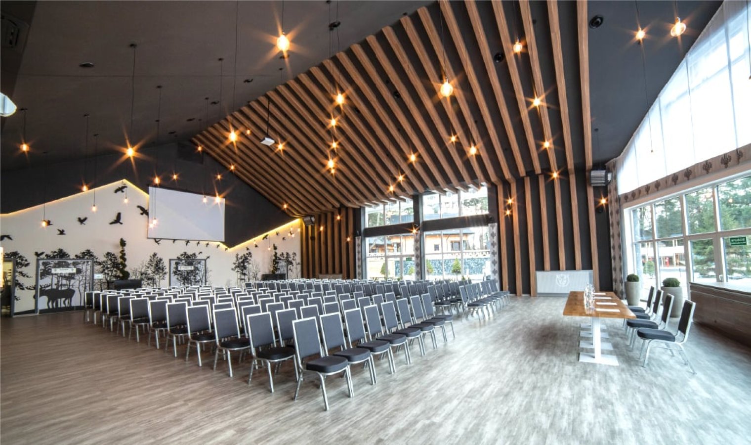 Oferujemy sale konferencyjne z pełnym zapleczem technicznym, elastyczną aranżację, wyżywienie i noclegi dla uczestników. A po części merytorycznej — strefa SPA, kolacja lub ognisko. Bez pośpiechu, za to z głową i atmosferą, której nie da się stworzyć w miejskim biurowcu.