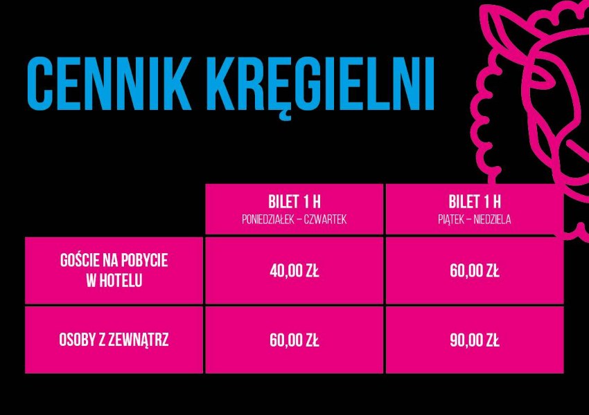 Kręgielnia mieści się w nowej części hotelu, tuż przy nowym lobby oraz strefie zabaw dla dzieci i nastolatków, dzięki czemu każdy – bez względu na wiek – znajdzie tu coś dla siebie. Dodatkowym atutem jest możliwość zamówienia posiłków ze skróconego MENU , dostępnego bezpośrednio na miejscu. To przestrzeń, która łączy sport, zabawę i wygodę – idealna na każdą okazję.