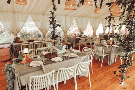 Namiot eventowy to doskonały pomysł na duże wesele Rzeszów. Ustawny teren oraz możliwość ułożenia stolików w aż pięciu wariantach sprawia, że nasi goście mogą zaprosić aż 300 osób. Zagwarantujemy niezapomnianą atmosferę, profesjonalną obsługę eventu podkarpackiego, regionalną kuchnię (w tym grill) i wspomnienia, które na zawsze z Tobą pozostaną.